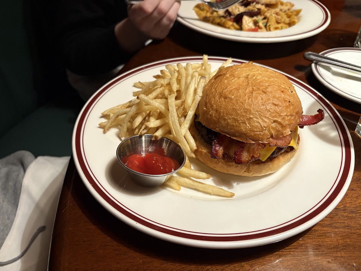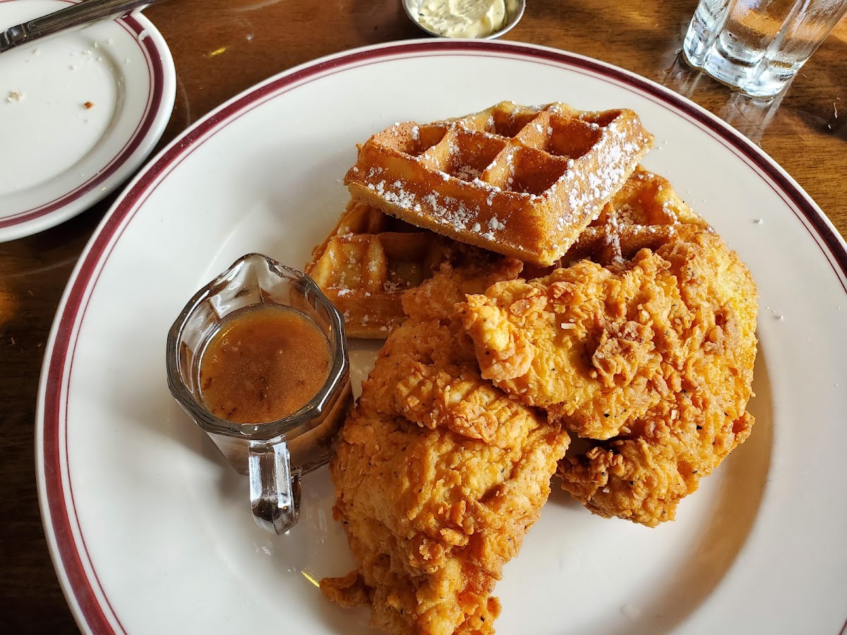 Visitors come for hearty dishes like their ribeye steak, which locals describe as perfectly cooked and richly flavored, alongside reliably satisfying sides such as loaded baked potatoes and crispy French fries. The menu’s range includes standout items like chicken and waffles, pecan-crusted trout with a bright chardonnay citrus sauce, and Louisiana-style pasta, indicating a broad appeal for diners who enjoy both traditional and slightly adventurous American fare.